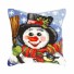 kruissteekkussen lachende sneeuwpop in avondsfeer