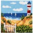 kruissteekkussen strandgezicht met vuurtoren